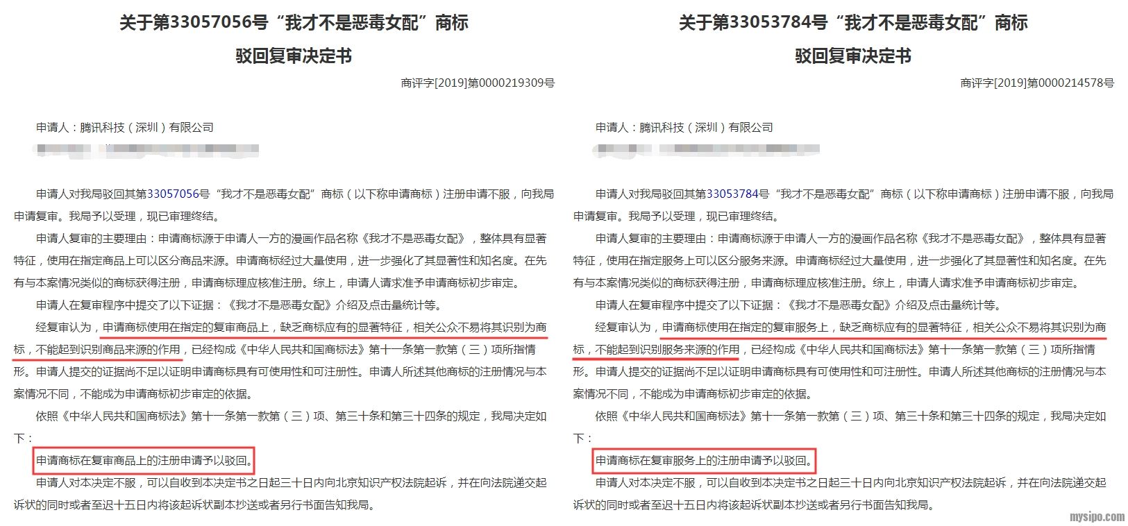 但看了这两件商标的驳回复审决定书后,才明白人商评委关注点不在“恶毒”上面。