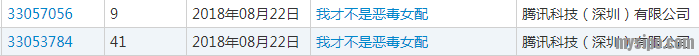 老样子,腾讯一如既往的在第9类和第41类上,注册了两件“我才不是恶毒女配”商标。
