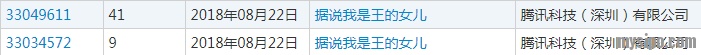 从下图来看,腾讯在2018年8月22日申请注册了两件“据说我是王的女儿”商标,分别在第9类和第41类上。
