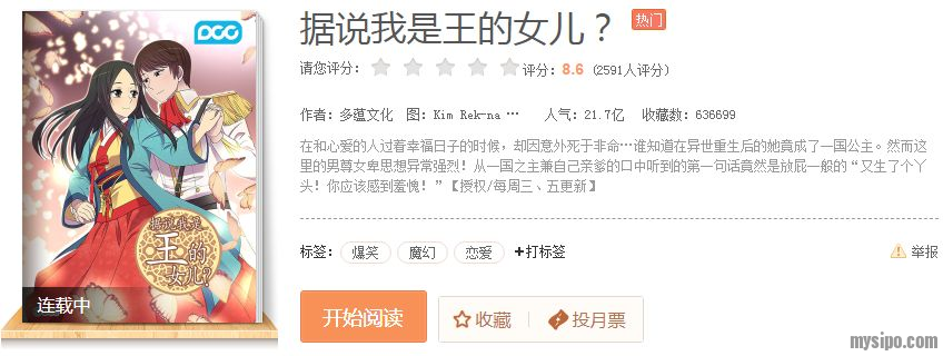 据小外甥女所说,她看的第一部漫画叫《据说我是王的女儿》。从简介来看,似乎是讲一个女孩穿越到男尊女卑的世界里,展开一系列“叛乱”行动的故事。