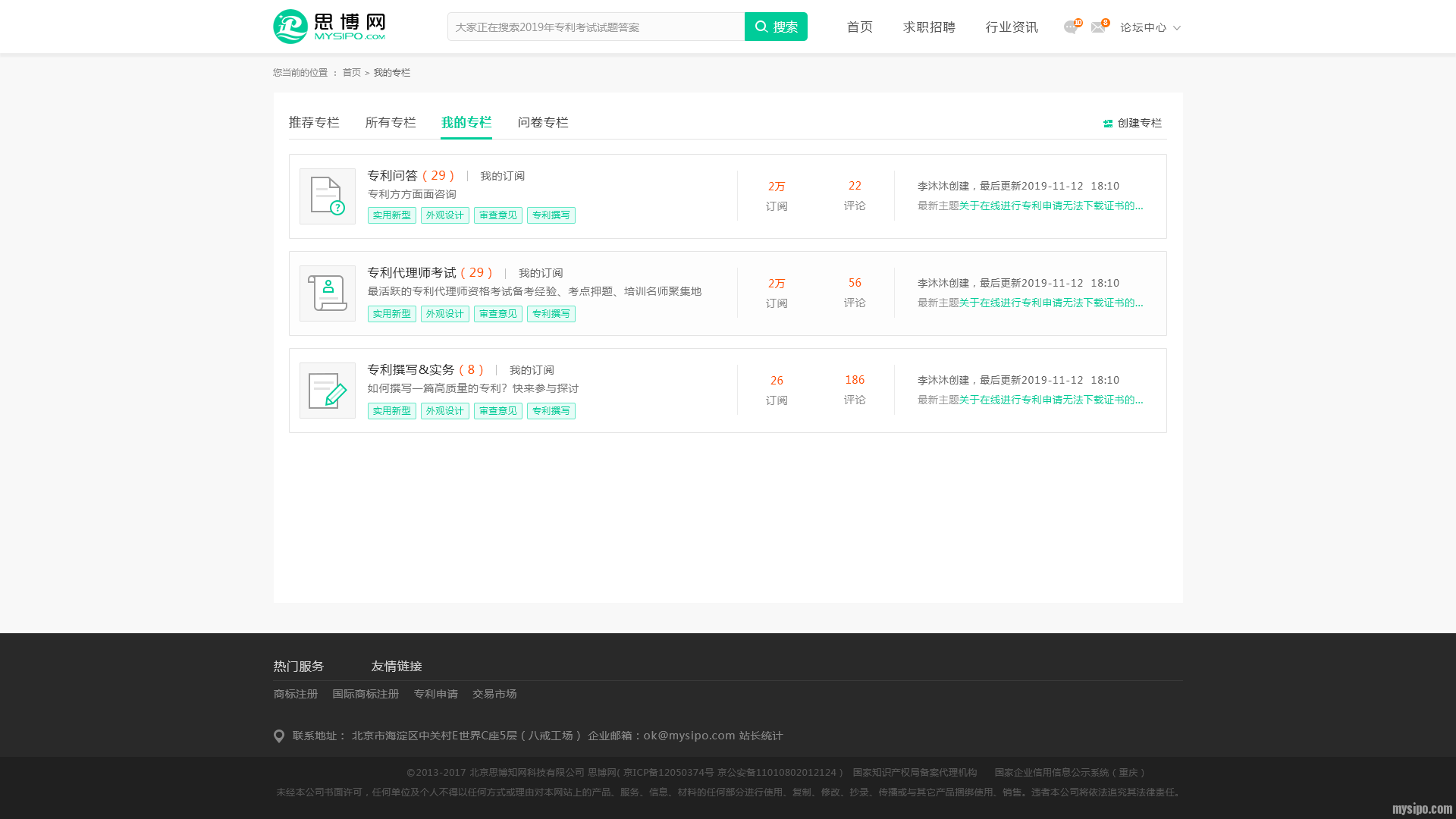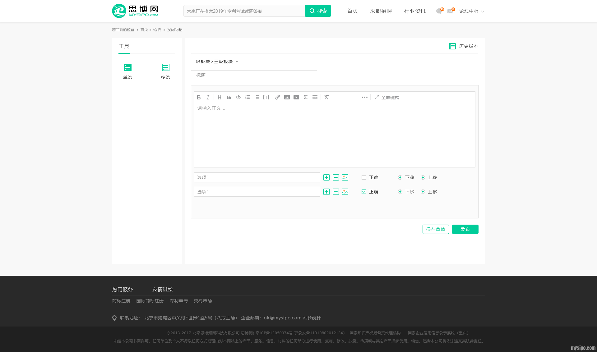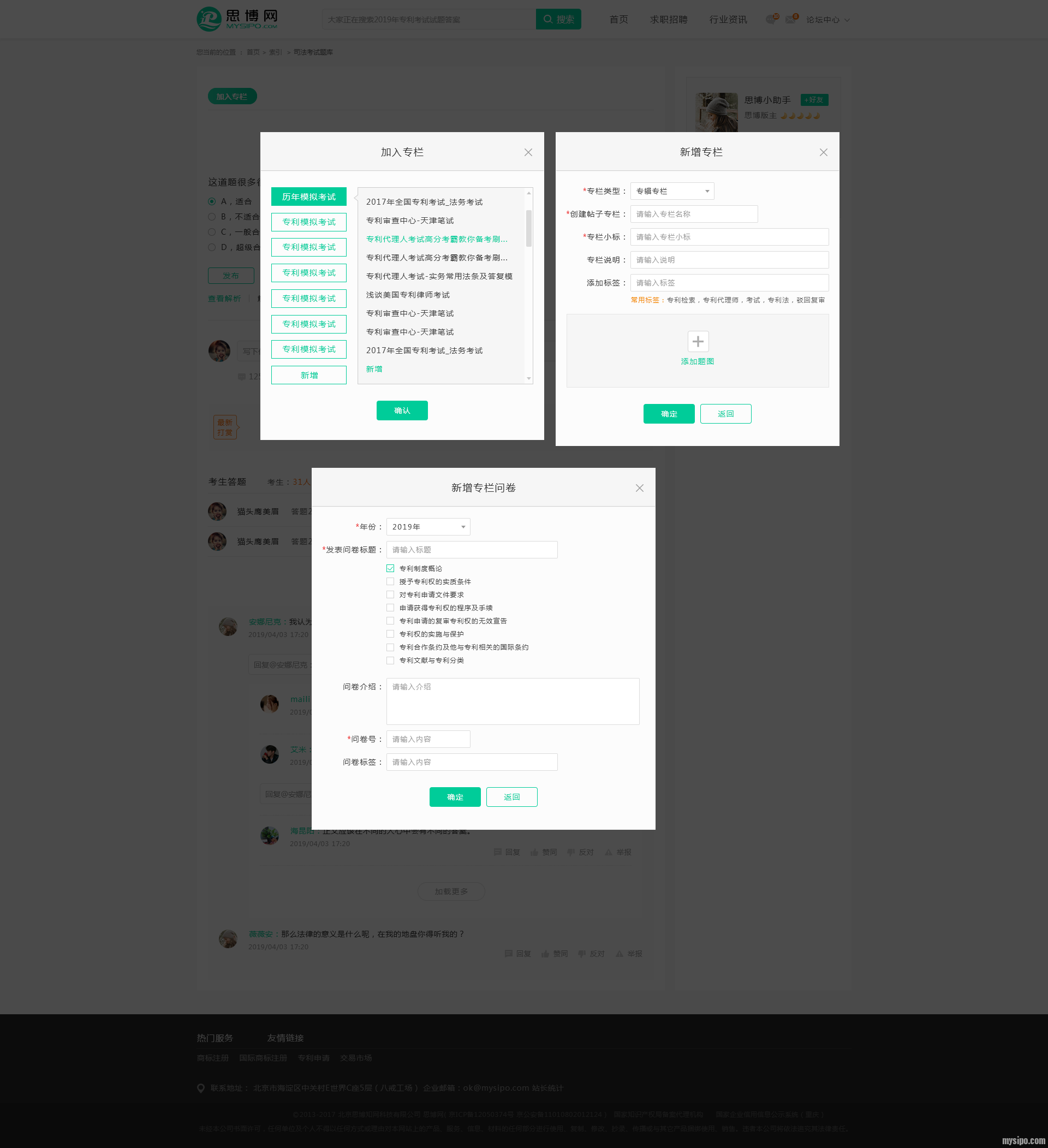 所有和知识产权相关的问题,皆可由用户自己发布专栏和问题,创建自己专属的题库!
