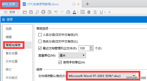 WPS文字/永中文字的默认保存格式更改为doc或docx;