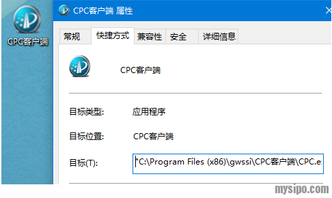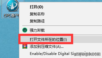 找到CPC客户端的桌面快捷方式,右键—打开文件位置或者右键—属性—目标,查看CPC的安装目录位置,截图如下: