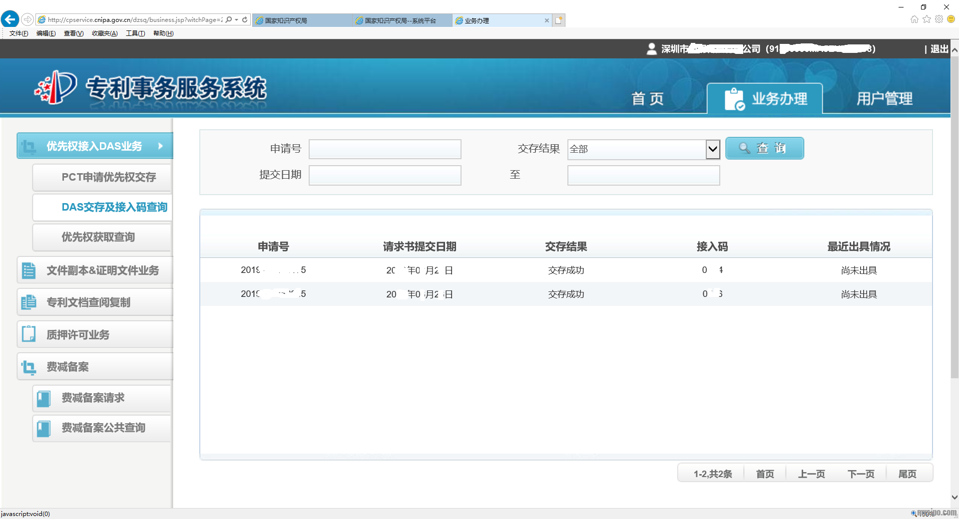2、等上3~7天,最多 15天 果汁局制作完成后,会给你发电邮通知你(CPC与电邮不会给你DAS 接入码),需经一定时间主动上去查看:http://cpservice.cnipa.gov.cn/index.jsp,才查到你的 DAS 接入码了,一般是 4 位数,如下图: