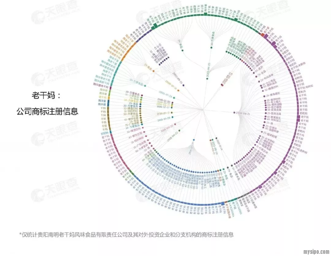 其实在面对商标抢注时,并不是所有的知名公司都处于被动,比如老干妈为防止商标被抢注,围绕核心品牌“老干妈”修筑了一条商标护城河。据天眼查显示,老干妈申请了“老于妈”、“干妈”、“好妈妈”、“老千妈”“光干妈”等商标。