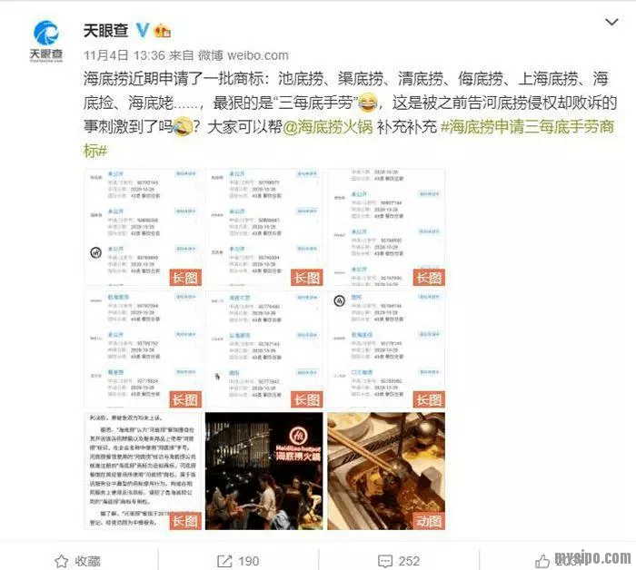 说起来,海底捞真是太绝了,他们在起诉“河底捞”商标侵权失败后,竟然一口气注册了263件商标,包括“池底捞”、“捞底海”、“粤底捞”、“渠底捞”、“清底捞”、“上海底捞”、“深海底捞”、“海底捡”、“三每底手劳”等。可见他们是意识到了商标保护的重要性,开始建立起自己的商标保护矩阵。