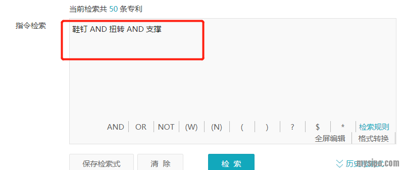 在检索式显示的编辑区,已形成的检索式是可以任意编辑的,甚至全删了,自己重新码一个检索式出来也是可以的。实际上就算一开始什么要素都不输入,扩展检索的编辑区就是可以直接用来编辑检索式,等同于高级检索编辑区,但这样做也太无聊了。这里这样演示只是告诉大家扩展检索编辑区的自由度: