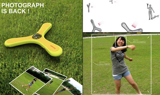 一款超COOL的相机,其外形是一个三角飞盘,掷出后绕着弧形轨道飞行并且利用空气动力学原理飞回来,采用空中拍摄技术,在旋转过程中捕捉人像,拍下你意想不到的画面。PS:万一甩坏了咋办呢。。。。
